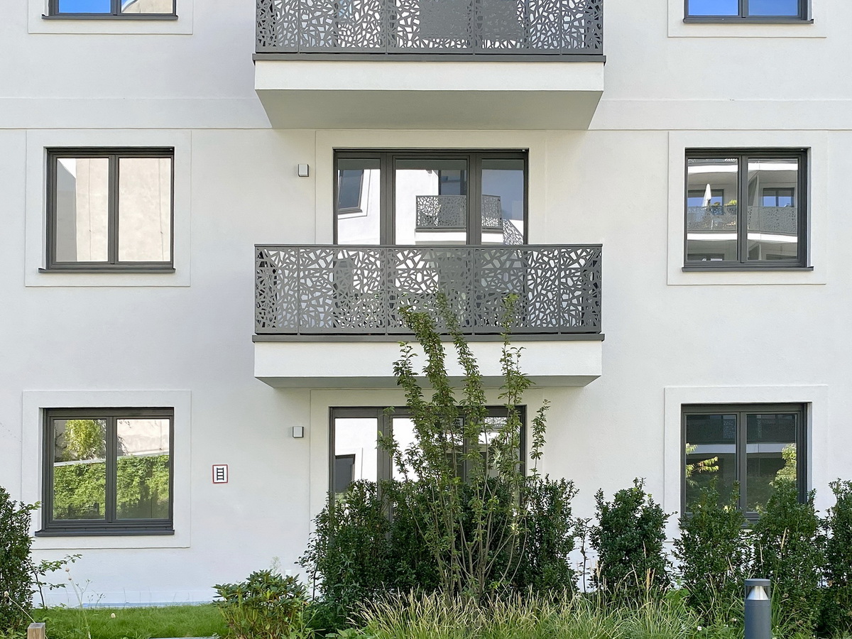 Nahezu jede Eigentumswohnung im Ensemble verfügt über einen privaten Balkon, eine Loggia oder Terrasse – je nach Lage und Schnitt der Wohnung. Die Außenbereiche sind funktional angebunden, teilweise überdacht und so dimensioniert, dass sie gute Nutzungsmöglichkeiten im Freien ermöglichen. Erdgeschosswohnungen verfügen über Terrassen mit eigenem Gartenanteil, viele Penthouse-Wohnungen verfügen über großzügige Dachterrassen mit Weitblick.