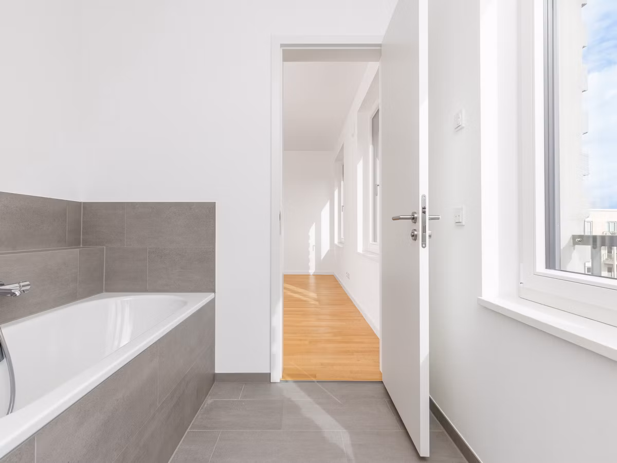 Die Erdgeschosswohnungen verfügen über private Gärten, die oberen Geschosse über Balkone oder Loggien. Hochwertige, zeitlose Materialien prägen die Ausstattung: Holzparkett in Eiche, hohe Türen sowie Bäder mit bodengleichen Duschen und ausgewählten Markenprodukten. Das Projekt ist seit 2025 fertiggestellt; die aktuell verfügbaren Wohnungen sind bezugsfertig und können nach dem Kauf kurzfristig bezogen werden. Für zusätzlichen Komfort sorgen Aufzüge, Stellplätze (39 oberirdisch und 23 in der Tiefgarage) sowie Fahrradabstellbereich. Die Gemeinschaftsaußenanlagen im Innenhof bieten Aufenthaltsbereiche – inklusive Spielplatz.
