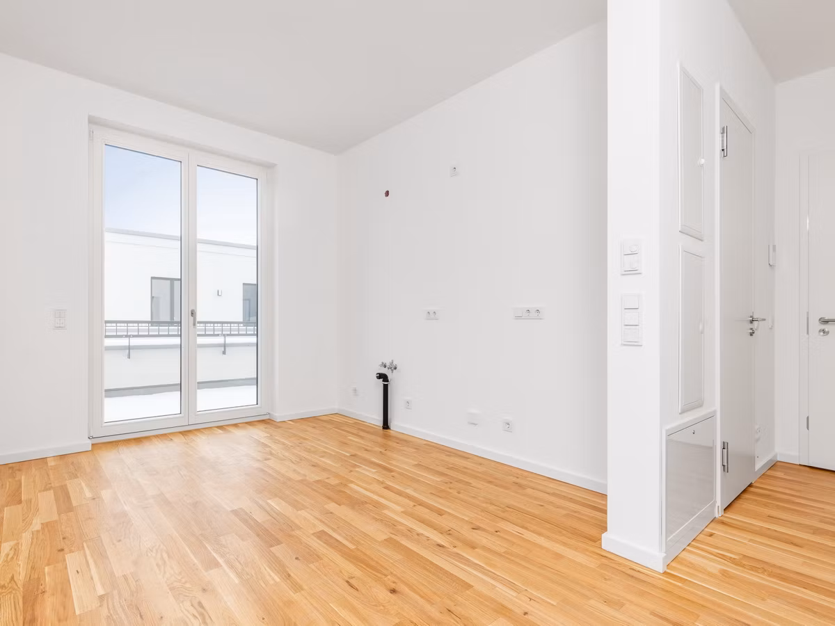 Die Erdgeschosswohnungen verfügen über private Gärten, die oberen Geschosse über Balkone oder Loggien. Hochwertige, zeitlose Materialien prägen die Ausstattung: Holzparkett in Eiche, hohe Türen sowie Bäder mit bodengleichen Duschen und ausgewählten Markenprodukten. Das Projekt ist seit 2025 fertiggestellt; die aktuell verfügbaren Wohnungen sind bezugsfertig und können nach dem Kauf kurzfristig bezogen werden. Für zusätzlichen Komfort sorgen Aufzüge, Stellplätze (39 oberirdisch und 23 in der Tiefgarage) sowie Fahrradabstellbereich. Die Gemeinschaftsaußenanlagen im Innenhof bieten Aufenthaltsbereiche – inklusive Spielplatz.