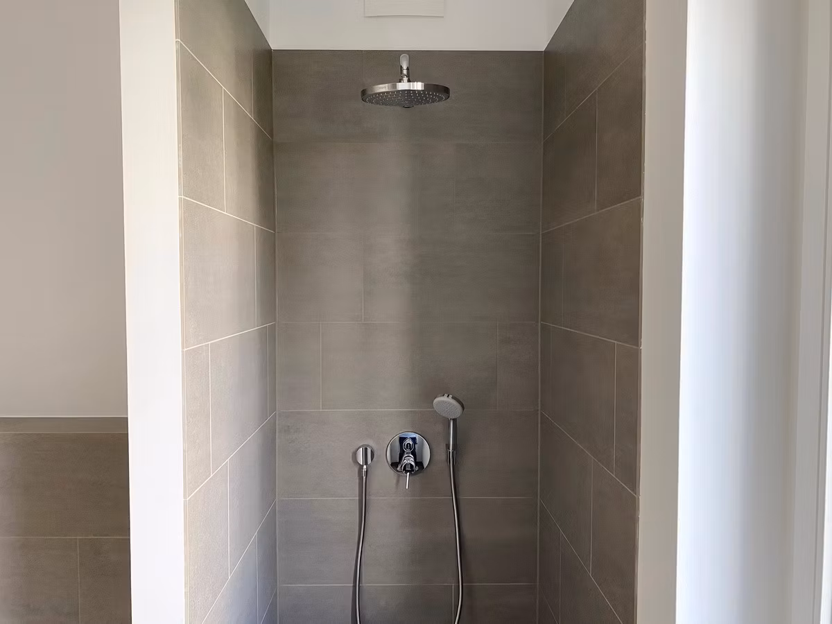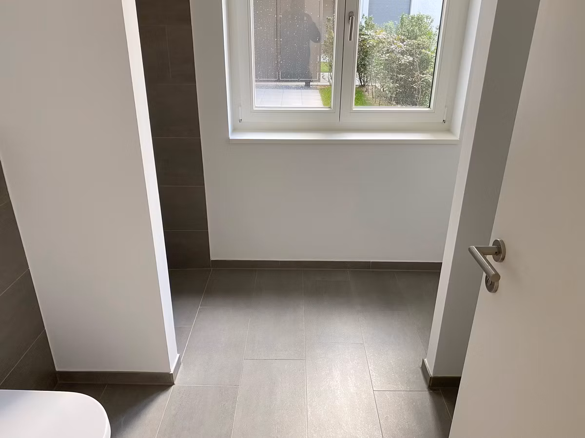 - Modernes Bad mit Fenster und bodengleicher Dusche