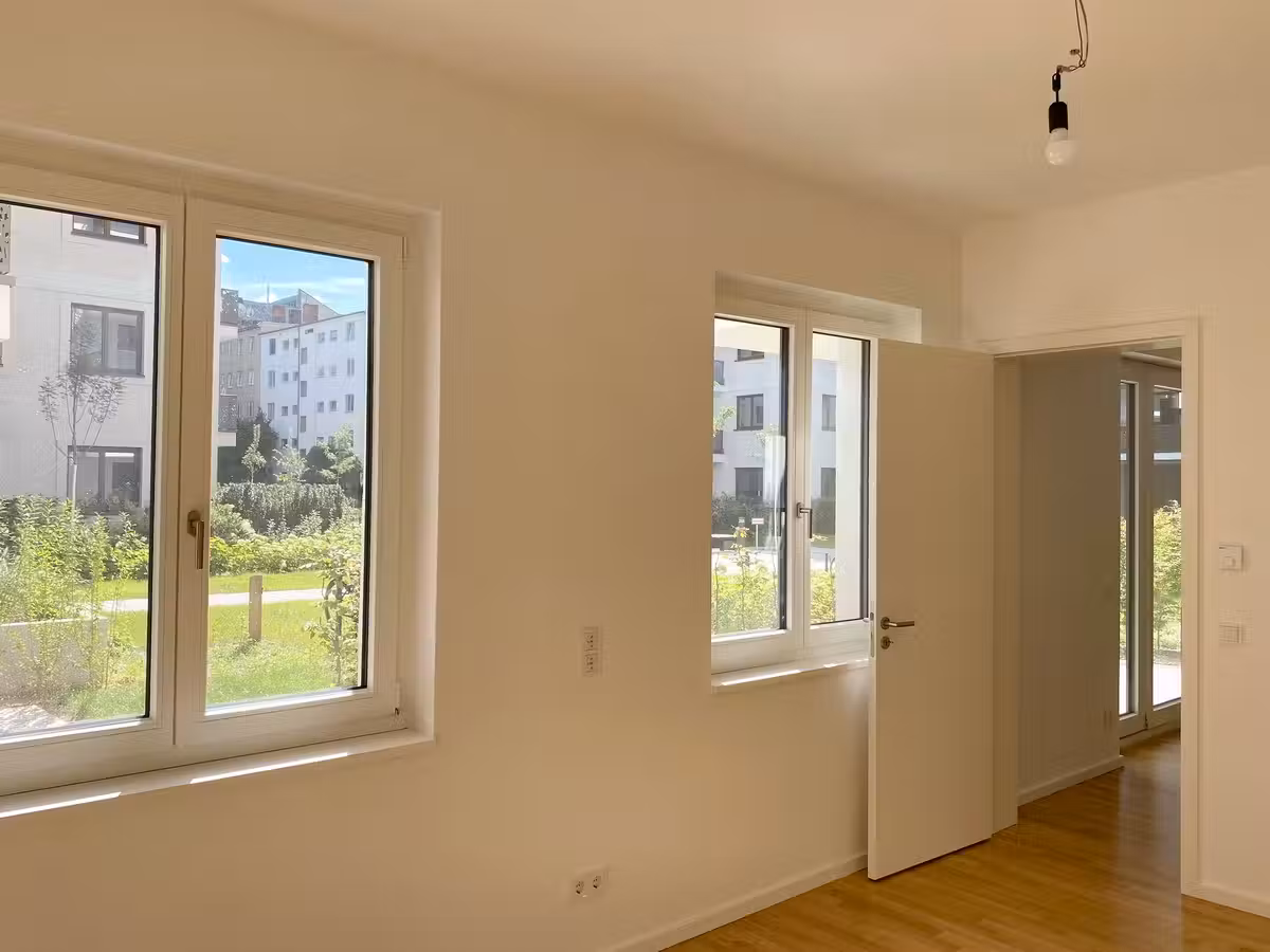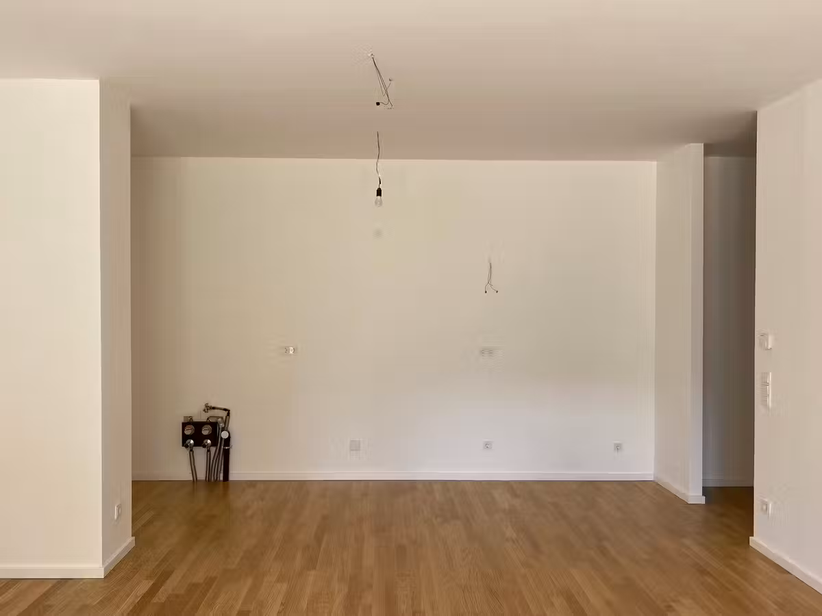 Hochwertige Materialien in warmen Farbtönen betonen die zeitlose Ausstattung aller Eigentumswohnungen. Helle Wandfarben ohne zusätzlichen Dekor, Eichenparkett in allen Wohnbereichen und hohe Innentüren schaffen ein großzügiges Raumgefühl und eine klare und gemütliche Wohnatmosphäre. Auch in den Bädern setzt sich der Einsatz zeitloser Materialien gekonnt fort. Hierzu gehören großformatige graue Fliesen sowie zurückhaltende Badelemente und Armaturen mit klaren geometrischen Formen.